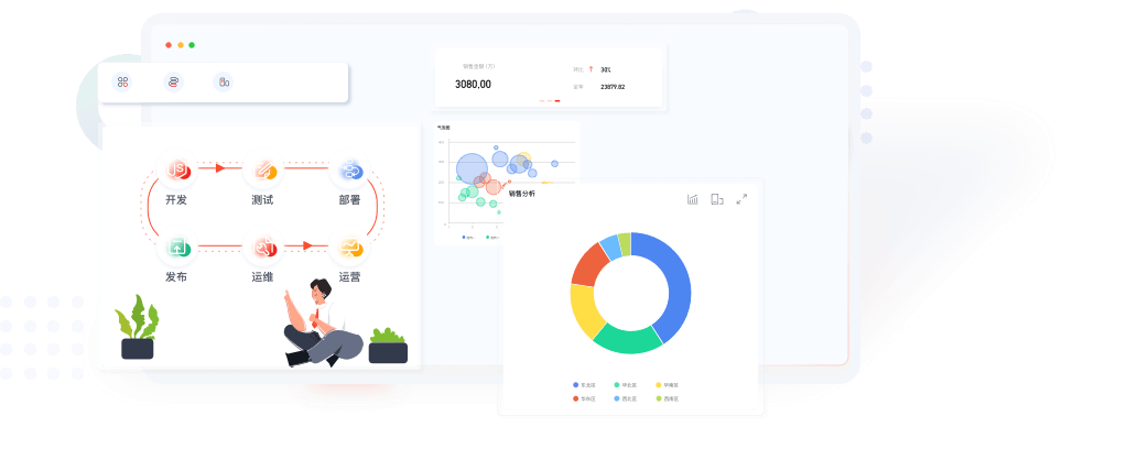 提供图形化界面、组件拖拽、模型驱动的方式,构建Web、移动应用以及小程序
